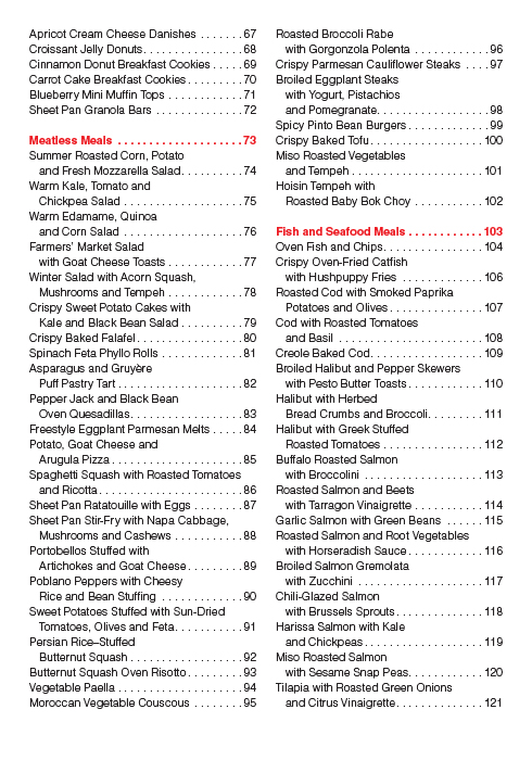 The Meatless Main Dishes — vegetarian and vegan favorites like Persian Rice–Stuffed Butternut Squash, Chili-Glazed Tofu with Asparagus Rice, and Frittata