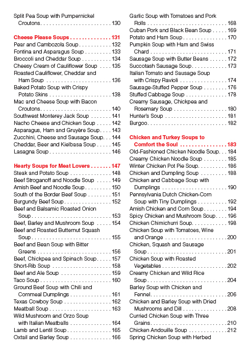 The definitive collection of recipes for soup lovers everywhere. A good soup nourishes the heart as well the stomach, spreading a feeling of satisfaction and contentment. Hot soup is warming on a winter day, while cold soup is just as welcome in the heat of summer. From comforting creamy chicken and rice soup to refreshing gazpacho, 300 Sensational Soups offers something for every season, mood and occasion. There are 50 international soups, including Vietnamese pho, Italian wedding soup and Middle Eastern harira. Soups from the sea include such favorites as snapper in Asian broth with habañero and shrimp, and shrimp and pea soup with lemongrass. Each recipe also includes tips and techniques along with garnishing ideas. As well, there are many creative variations and serving suggestions. There is also the Just (Soup) Desserts chapter, which features 20 dessert soups, including coconut soup with mango fritters, chocolate soup with brownie croutons, and chilled cherry soup with crème anglaise swirl. With 300 recipes to choose from, ranging from everyday fare to elegant dishes for entertaining, 300 Sensational Soups offers home chefs a perfect bowl of soup every time.