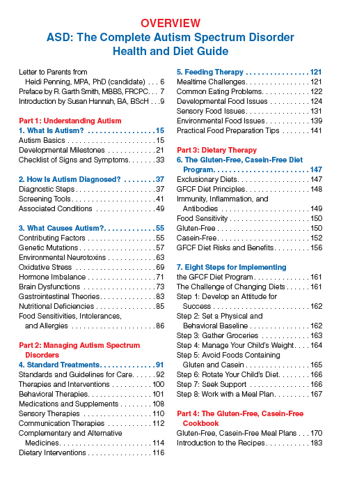 The 175 recipes and gluten-free/cassein-free meal plans help to build a nutritious, varied and tasty diet that may improve gastrointestinal and ASD symptoms for some children. This author team has provided a comprehensive and current resource book on ASD for anyone affected by this disease.