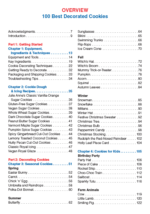 All the information about getting started is featured — from techniques, equipment and ingredients to easy-to-follow instructions on filling and using a pastry bag, rolling/shaping cookies, and advice on cookie sheets and rolling pins. And the comprehensive decorator cookie dough section even features gluten-free and vegan options. It includes delectable recipes for Vermont Maple Sugar Cookies, Peanut Butter Sugar Cookies and Julie Anne’s Classic Vanilla-Orange Sugar Cookies.