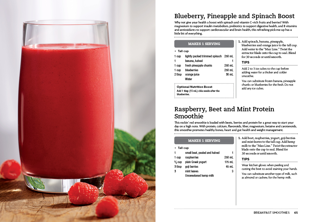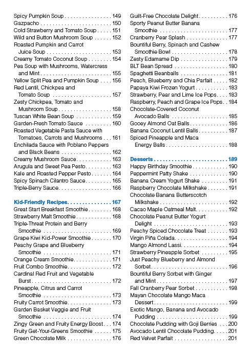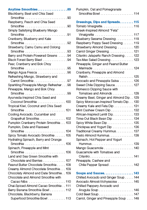Some of the recipes for an energizing start are Blueberry and Coconut Protein Smoothie and Hydrating Spinach, Berry and Orange Smoothie. Chilled Peppery Avocado and Arugula Soup along with African-Inspired Lentil Dip are perfect after an intense workout or for entertaining.