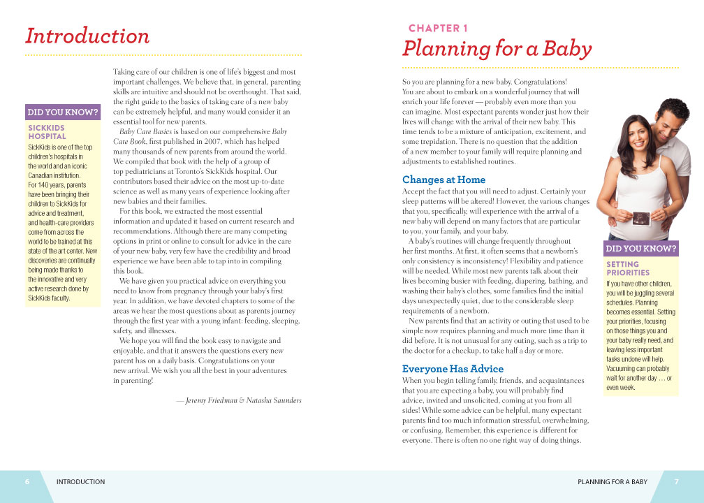 Despite all the planning in the world, nothing can really prepare a soon-to-be new parent for that big step after the baby is born. All that well-intentioned information and counsel offered by family and friends is just not enough and likely confusing when the stressful days arrive. Written by leading pediatric experts in a friendly, easy-to-understand style, Baby Care Basics offers a comprehensive guide to help parents make the right choices for that new baby. In full color, the book is engaging and user-friendly. It covers all the essential topics from a baby’s birth, the first few days, growth, development, breast- and formula-feeding, introducing solid food, sleeping through the night and much, much more. Having easy and quick access to this comprehensive information is so important in getting started on parenting and establishing a routine that works for all.