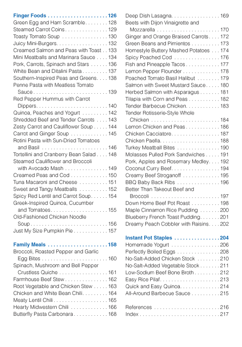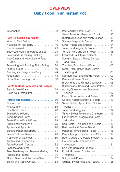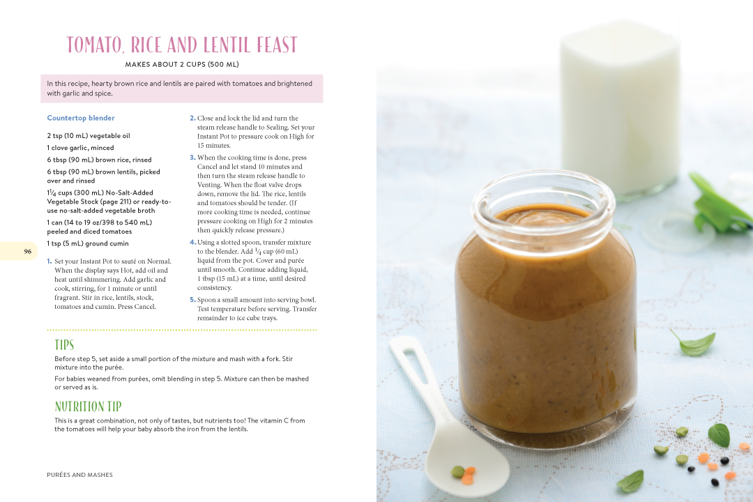 Here, parents will find everything they need to know to ensure that their baby’s nutrient needs are being met, to prevent choking and to handle picky eating. Included in the book are 125 balanced recipes for babies and toddlers at every age and stage of development. Recipes include 50 purées, 25 finger foods and 50 family-friendly recipes along with tips on storage times, serving fresh or freezing, and nutritional benefits of individual ingredients. The book even includes sample meal plans, tips on storage in the fridge and freezer, and frequently asked questions with answers from a pediatric dietitian.