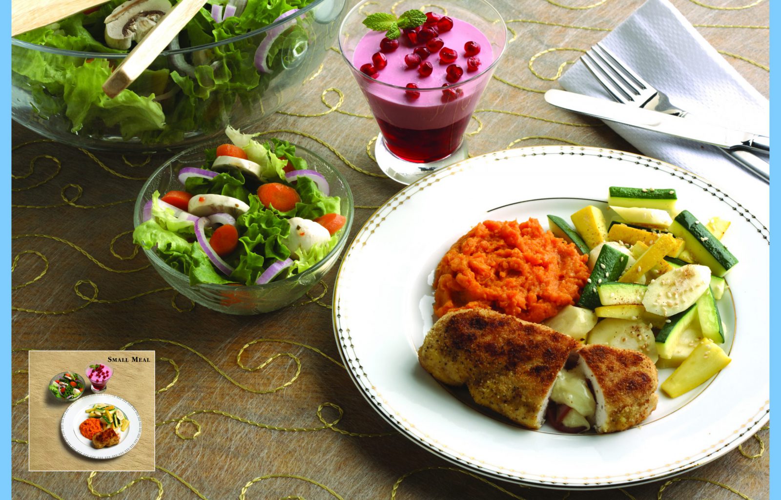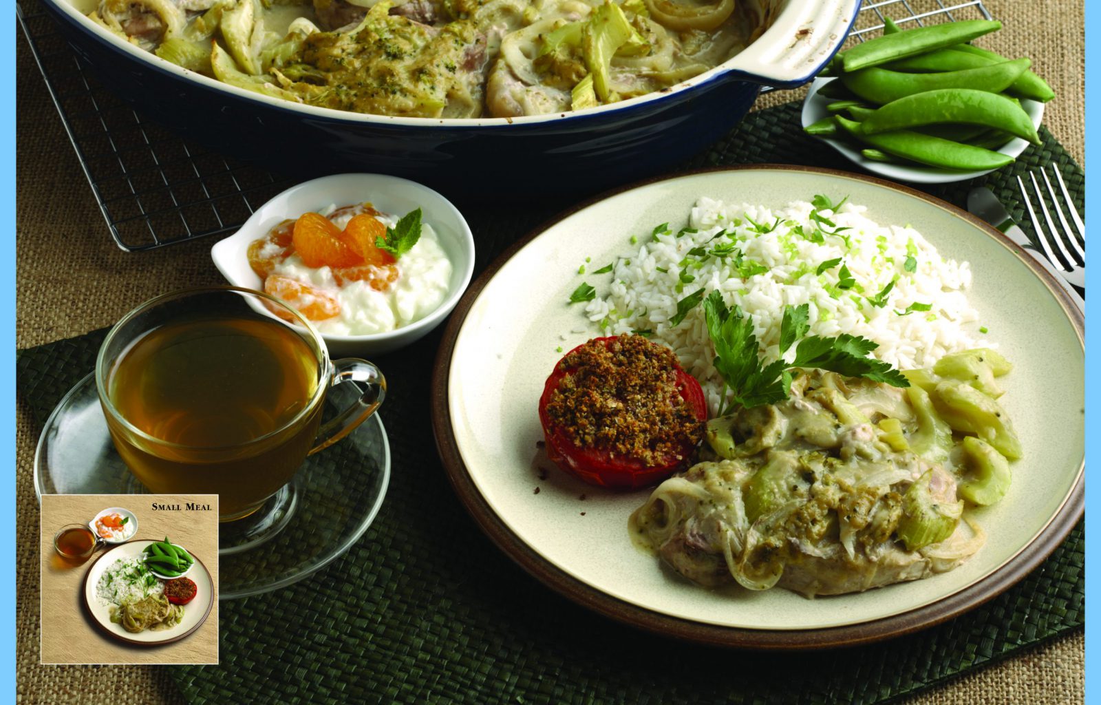 These meal plans are so sumptuous, they can be enjoyed not only by those managing diabetes but by anyone who loves great food: Dinner #22: Sun Burger, Kale and Orange Salad, Dream Delight Dinner #30: Roti with Curried Filling, Cucumbers in Yogurt, Coconut Meringues Dinner #33: Thai Chicken, Poppy Seed Spinach Salad, Summer Fruit Cream Dinner #38: Pork Chop Casserole, Grilled Tomato, Mandarins and Cottage Cheese