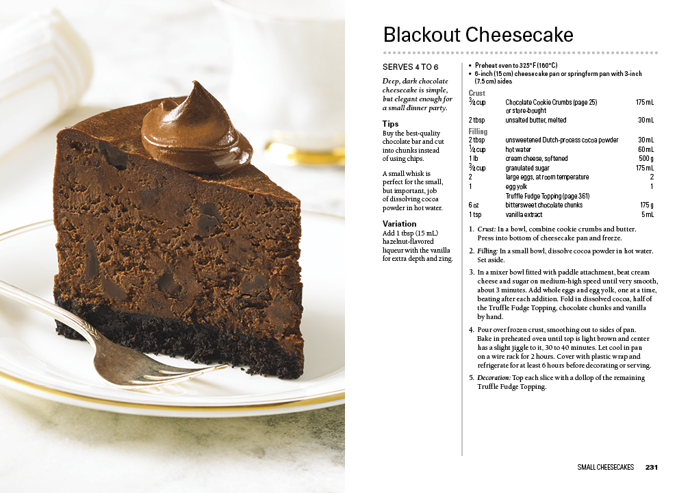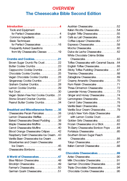 The book features extensive how-to instructions, along with sections on equipment, basic tips and techniques for perfect cheesecakes, a list of common ingredients and frequently asked questions from the author’s baking classes. It is the ideal guide for beginners and seasoned bakers alike, ensuring that they make the very best cheesecakes.