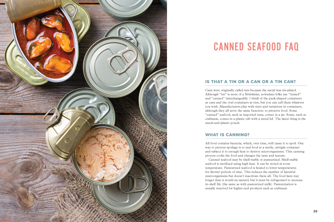 Tinned Fish Pantry Cookbook: 100 Recipes from Tuna and Salmon to Crab and More, includes more than 100 classic canned fish and seafood recipes. North Americans already consume about 4 lbs of canned fish and seafood per person annually. With home-cooking and pantry-loading gaining momentum, sales of tinned fish are soaring, with some types increasing by as much as 100 percent. That”s a lot of tuna casserole! This book is devoted to expanding the range of ways for using tinned fish and shellfish. Why? Because tinned seafood is a great way to consume inexpensive protein in troubled times. Enjoy recipes for salmon, tuna and crab, and then expand your repertoire to include anchovies, clams and sardines. Enjoy a lazy Sunday morning with Curried Scrambled Eggs and Crab, escape lunchtime repetition with a divine Tuna and Artichoke Panini and round out the day with heavenly Clam Carbonara. Consumers want safe, healthy, ready-to-eat tinned seafood and we’ve got the easy and delicious recipes to make every meal its best.