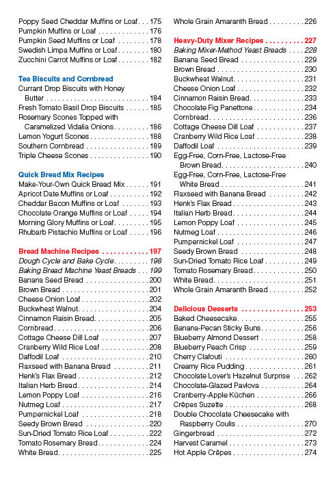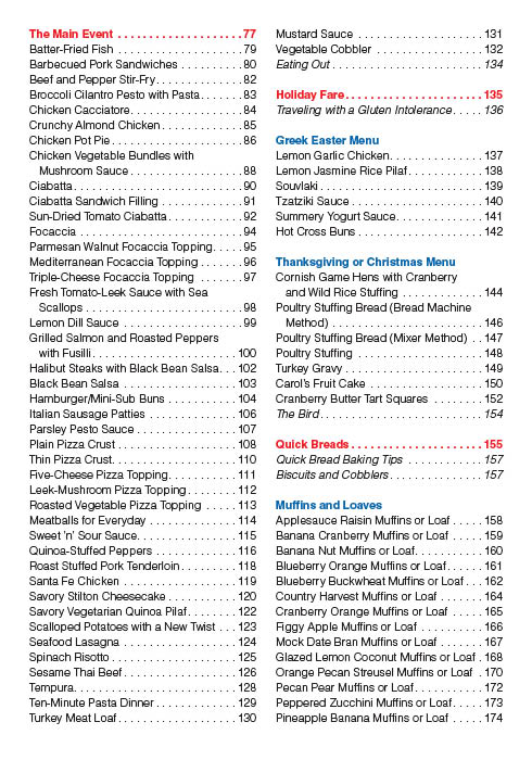 Outstanding gluten-free recipes are beautifully organized for ease of use and preparation whatever the time of day or occasion: Breakfast and Brunch Appetizers Soups, Salads and Dressings The Main Event Quick Breads Bread Machine Recipes Heavy-Duty Mixer Recipes Holiday Fare Delicious Desserts Sweet Treats. Also included is useful information on maintaining a gluten-free lifestyle — whether you’re just beginning or simply need to check in for a quick reference.