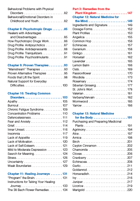 Time-honored medicinal herbs are featured, like verbena, valerian, passionflower, hops and rosemary, as well as over a dozen conditions and accompanying prescriptions. They include anxiety, lack of appetite, insomnia, grief, stress and listlessness. The final section contains a complete index of all the herbs, with a cross-reference to the specific concern they treat as well as a complete profile. Also featured are often-asked questions, source information and additional recommended forms of therapy, making this a very useful resource to have at your fingertips.