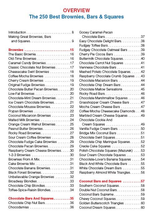 The ultimate collection of easy and sumptuous desserts! For sweet satisfaction and easy preparation, there’s nothing like a plate full of brownies, bars or squares fresh from the oven. In the world of baking, these are the ultimate comfort foods, evoking wonderful memories. Best of all, brownies, bars and squares are so easy to make. For many recipes, you simply mix up the dough in one bowl, put it into a square or oblong pan, bake, slice and enjoy!